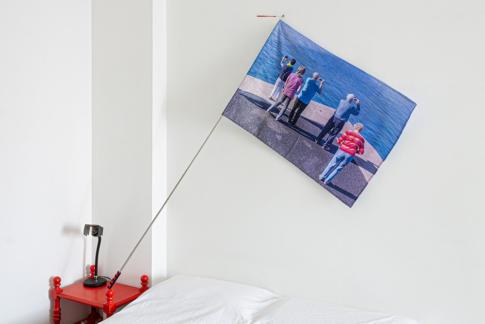 “Compartir la vida vivida” es una selección de proyectos de artistas de nuestro contexto centrada en enfatizar la idea de entender nuestro tiempo mirando los sucesos y los acontecimientos de otra manera. No se quiere ver más allá, se quiere ver y mirar desde otro sitio. Desde un colchón viejo, un teléfono retirado o un matrimonio que se ha esfumado hasta las imágenes que surgen al bajar del monte, las referencias políticas y el humor que muchas veces se entremezclan o la idea fugaz e instantánea de los recuerdos de viajes que nuestra propia mente modifica.