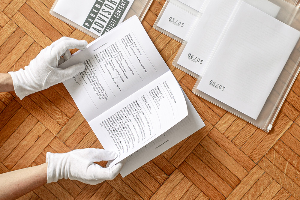 Liben Svaart, es una artista que trabaja en el ámbito audiovisual y performativo. En esta exposición tenemos una publicación hecha con periódicos intervenidos que crean nuevos titulares centrados en el lenguaje que se utiliza en los medios de comunicación y redes sociales.
